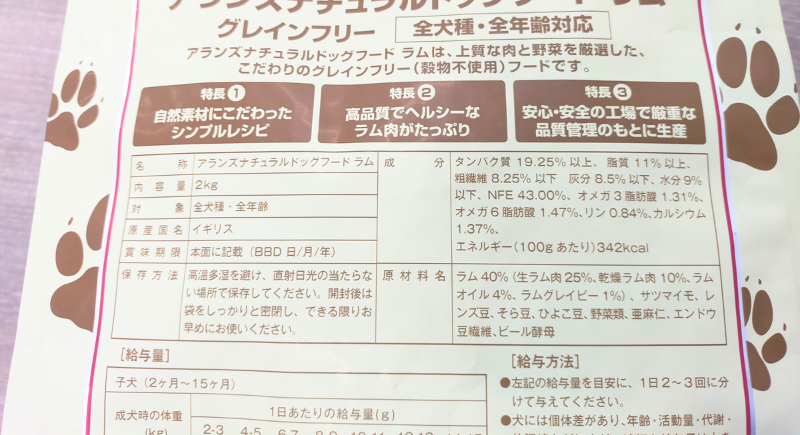 また、犬は穀物を消化しにくいので、穀物でカサ増ししているフードは安価ですが注意が必要です。